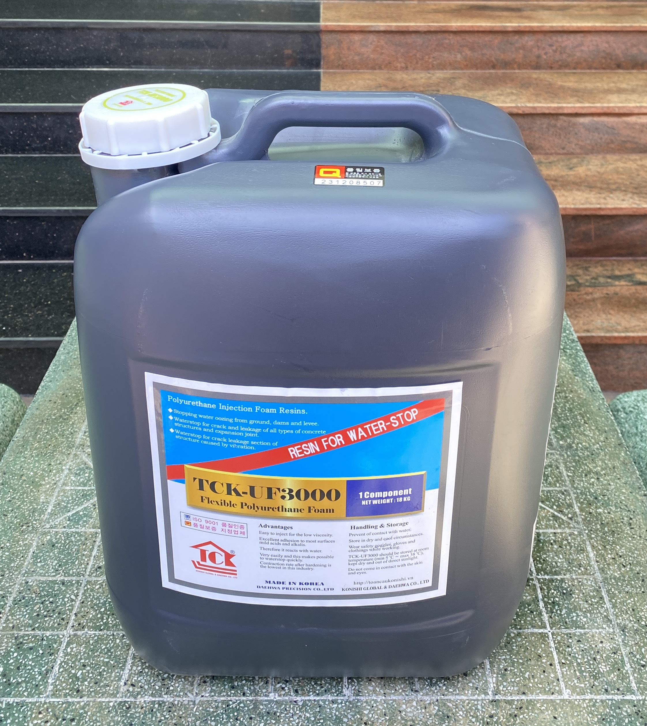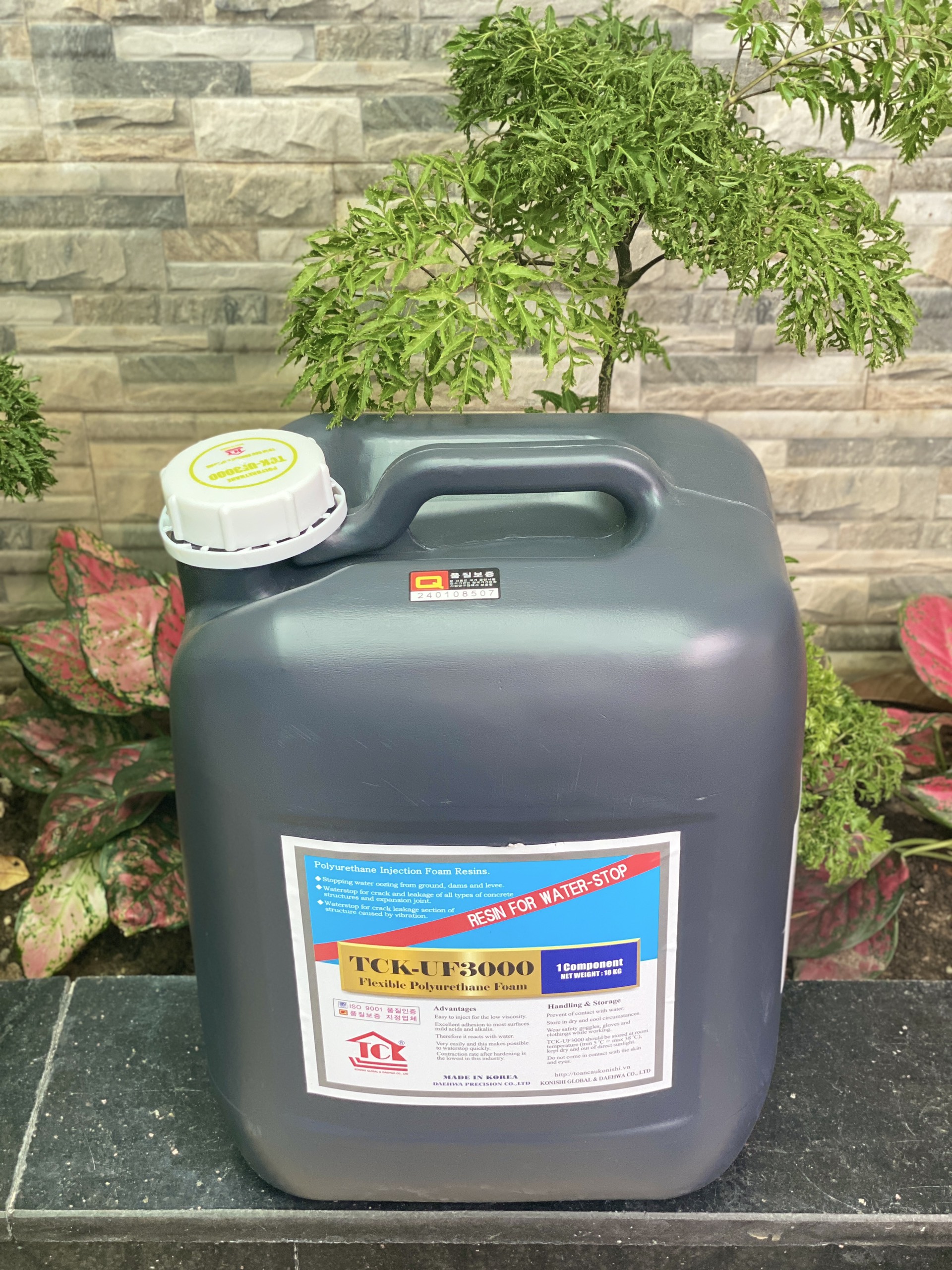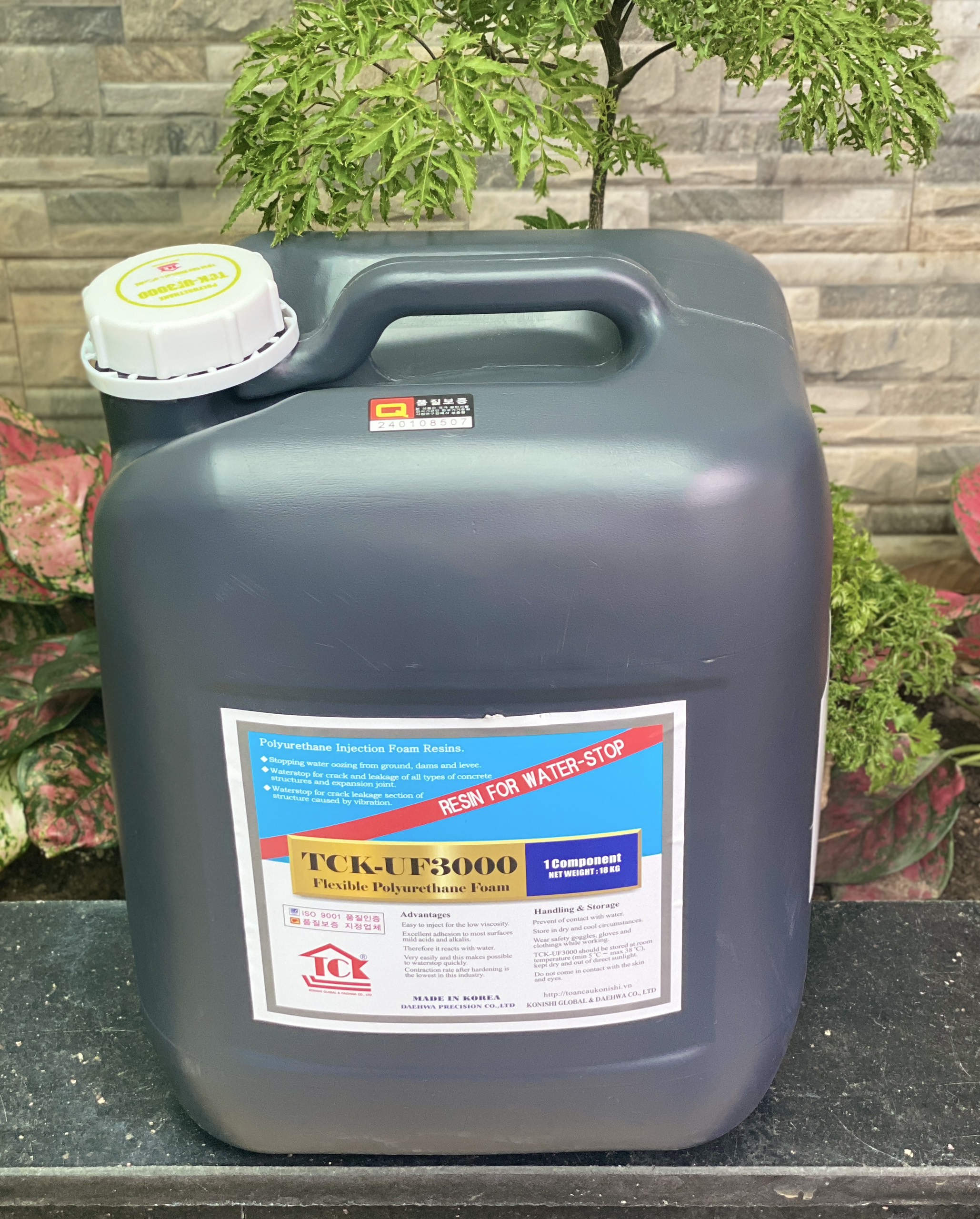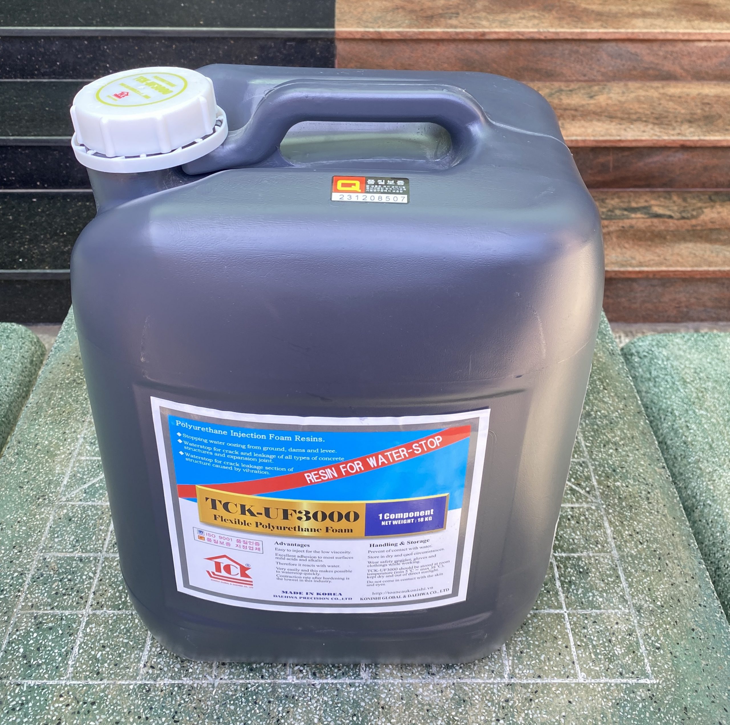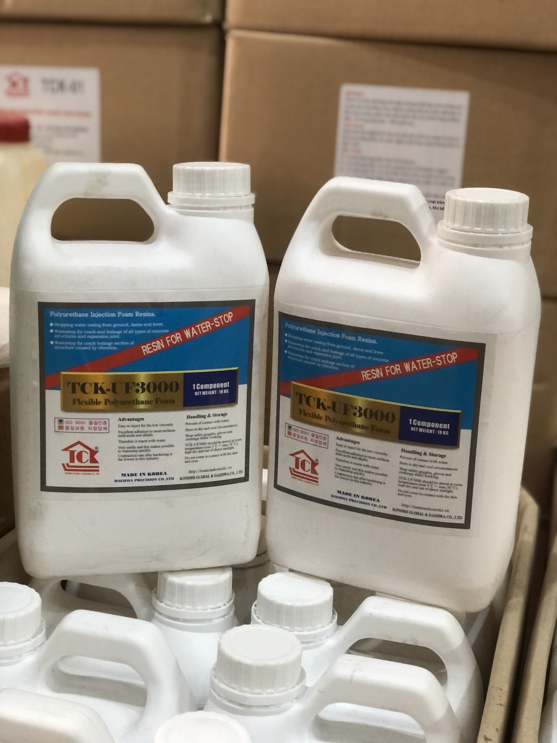 Keo Pu Foam trương nở chống thấm TCK-UF3000 là sản phẩm được nhập khẩu tại Hàn Quốc thuộc thương hiệu TCK, đây là một trong những thương hiệu đi đầu về việc phân phối các sản phẩm xử lý sự cố công trình lớn nhất hiện nay. Keo Pu trương nở chống thấm TCK-UF3000 với thành phần chính là polyurethane 1 thành phần có độ trương nở cao khi được bơm vào các vết nứt rạn. Thành phẩm sau khi trương nở đạt hiệu quả chống thấm và hàn gắn vết nứt cao. Keo PU TCK-UF3000 là dòng keo bơm chống thấm không thể thiếu trong quá trình xử lý và chống rò rỉ của vết nứt, rạn trên mọi công trình.