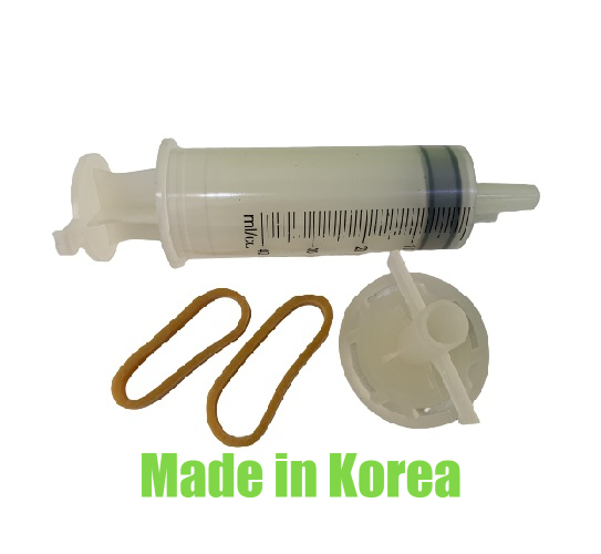 1 bộ ống bơm xy lanh bao gồm: 1 ống, 1 nắp xy lanh và 2 sợi dây thun.